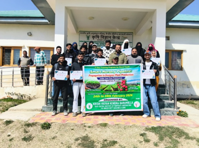 Krishi Vigyan Kendra, Baramulla, ICAR-Central Institute of Temperate Horticulture, successfully organized a five-day training programme on “Smart Nursery Pipeline: Propagation to Designer Plant Production under Low-Cost Polyhouses” under the ARYA (Attracting and Retaining Youth in Agriculture) Project from 24-28 February 2026 at KVK Baramulla. The programme was designed to build technical capacity among rural youth and promote entrepreneurship opportunities in scientific nursery raising and plant propagation.