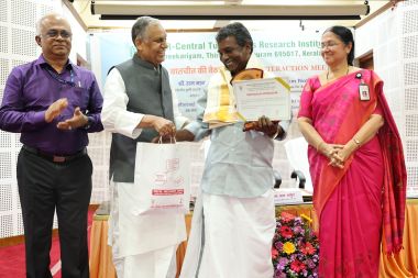 As part of the programme, progressive farmers Shri L. G. Gopakumar (Parassala), Shri Rajan (Poovakuddy), and Shri R. Raveendran (Uloor) were honoured by the Minister for their outstanding contributions to tuber crops cultivation.