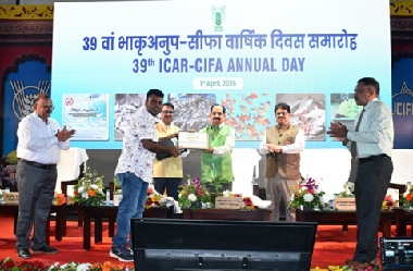 ICAR-Central Institute of Freshwater Aquaculture, Bhubaneswar has signed a MoU with commercial carp hatchery operator Mr Nitin Nikam of West Coast Aquatics Isapur Hatchery, Maharashtra and Mr Amrita Das of Hare Krishna Fish Farm, West Bengal, for being authorised multiplier units to disseminate AhR-Jayanti rohu and CIFA-Amrit catla developed through selective breeding by the institute across the country. The MoU was signed today during ICAR-CIFA's 39th Annual Day.