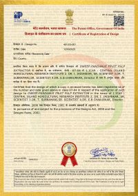 पांडनस (केवड़ी) फलों की रेशेदार कीज़ से फ्रूट पल्प निकालने के लिए एक कुशल, मेहनत बचाने वाला, हाथ से पकड़ने वाला टूल। यह आविष्कार अनोखा है; एक व्यक्ति इस टूल से 320 कीज़/घंटे से पल्प निकाल सकता है, जबकि पारंपरिक तरीके से 180 कीज़/घंटे से पल्प निकाला जा सकता है। इसके अलावा, इस टूल से मिला फ्रूट पल्प पारंपरिक तरीके से मिले पल्प की तुलना में दूसरे फाइबर से ज़्यादा साफ़ था। यह टूल अलग-अलग अनुसंधान एवं विश्लेषण के लिए फ्रूट पल्प की प्रोसेसिंग के साथ-साथ फ्रूट पल्प केक बनाने में मदद करेगा।