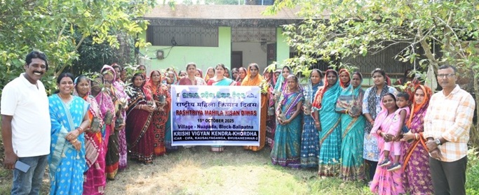 कृषि एवं ग्रामीण परिवर्तन में महिलाओं की महत्वपूर्ण भूमिका को सम्मानित करने के उद्देश्य से आज खोरधा जिले के बालिपटना ब्लॉक के नुआपाड़ा गाँव में कृषि विज्ञान केन्द्र (भाकृअनुप-केन्द्रीय मीठा जल मत्स्य पालन संस्थान, भुवनेश्वर), खोरधा, तथा भाकृअनुप-कृषि प्रौद्योगिकी अनुप्रयोग अनुसंधान संस्थान, कोलकाता के सहयोग से राष्ट्रीय महिला किसान दिवस का आयोजन किया गया। इस अवसर पर महिला किसानों, स्वयं सहायता समूह (एस.एच.जी.) की सदस्याओं तथा किसान उत्पादक कंपनियों (एफ.पी.सी.) के प्रतिनिधियों ने भाग लेकर खाद्य एवं आजीविका सुरक्षा में अपने योगदान का गौरवपूर्ण प्रदर्शन किया।